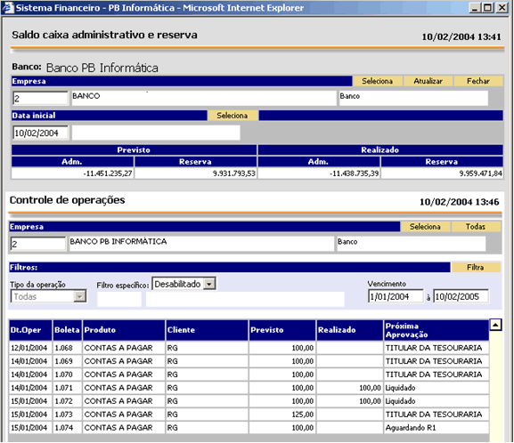 - Centraliza todas as operações financeiras do Banco provenientes dos sistemas legados, bem como, de boletamento manual;