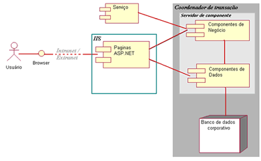 O cliente acessa o sistema pelo Browser Internet Explorer 6.0 através de uma rede local(intranet) ou através da internet.